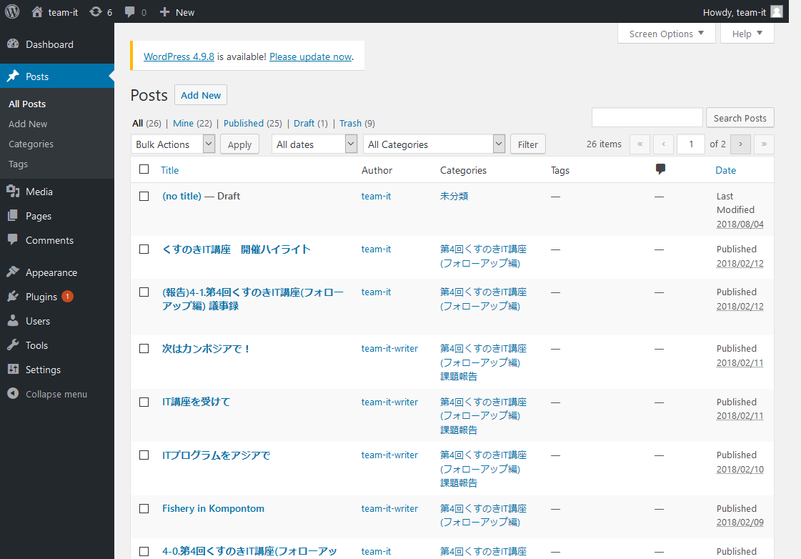 ログイン後、「Posts」をクリック。