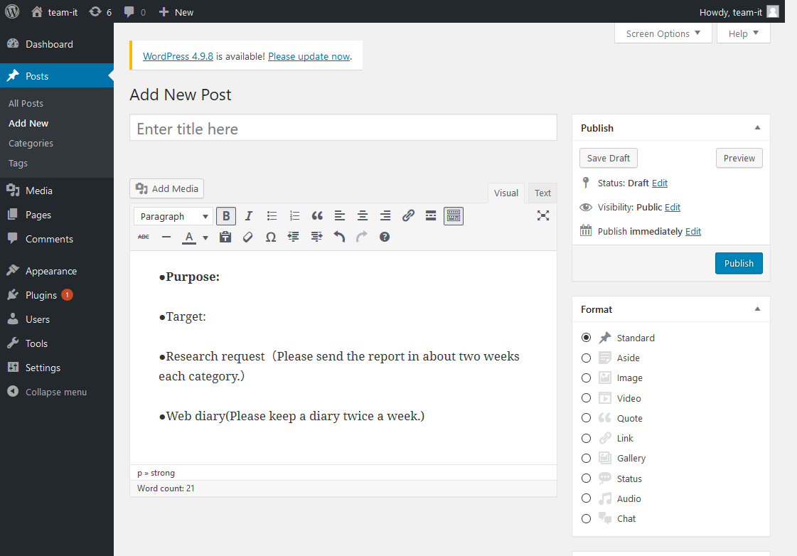 Web diary(Please keep a diary twice a week.)